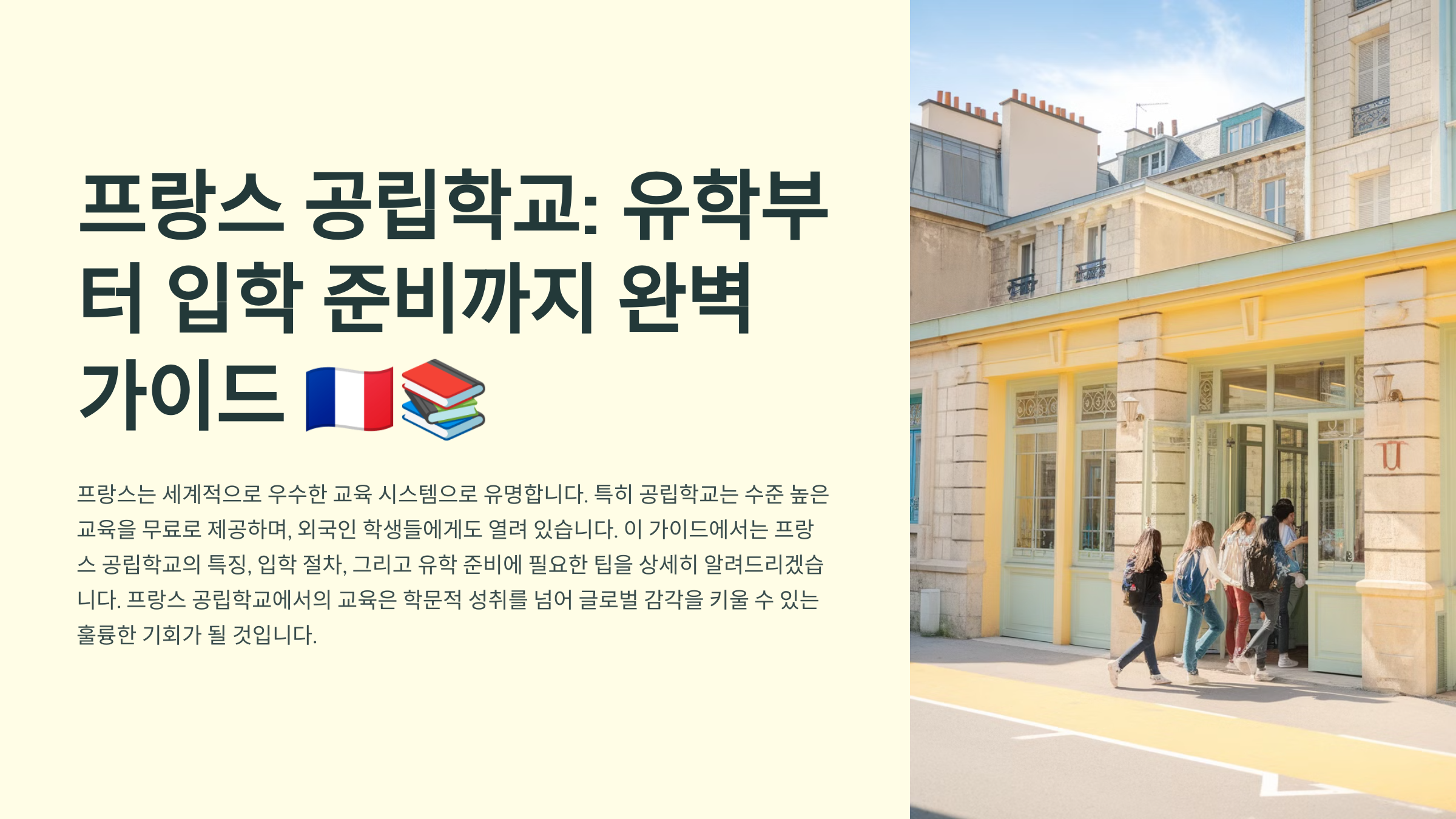 프랑스는 전 세 계에서 가장 우수한 교육 시스템 중 하나로 잘 알려져 있습니다. 특히 공립학교는 수준 높은 교육을 무료로 제공하며, 외국인 학생에게도 그 문이 열려 있습니다. 이번 글에서는 프랑스 공립학교의 특징, 입학 절차, 그리고 유학 준비에 필요한 팁을 상세히 알려드리겠습니다. 📖✨