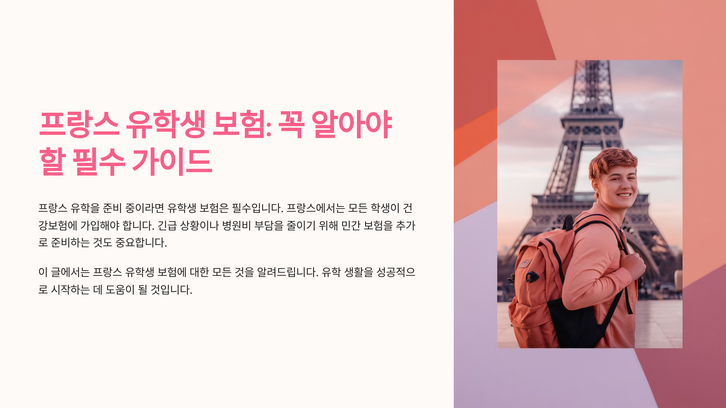 유학 생활에서 건강은 가장 중요한 요소 중 하나입니다. 특히 프랑스에서는 외국인 학생들에게 건강보험 가입이 의무입니다. 보험은 단순히 병원비를 보장하는 것을 넘어, 예기치 못한 상황에서도 안심할 수 있도록 도와줍니다. 😊