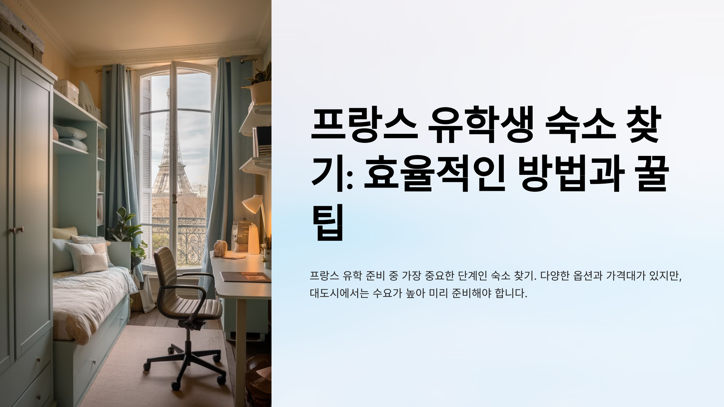 프랑스 유학을 준비하면서 가장중요한 단계 중 하나는 바로 숙소 찾기입니다. 🏡 프랑스의 숙소는 다양한 옵션과 가격대가 있지만, 특히 파리 같은 대도시에서는 수요가 높아 미리 준비하지 않으면 원하는 조건의 숙소를 구하기 어려울 수 있습니다.