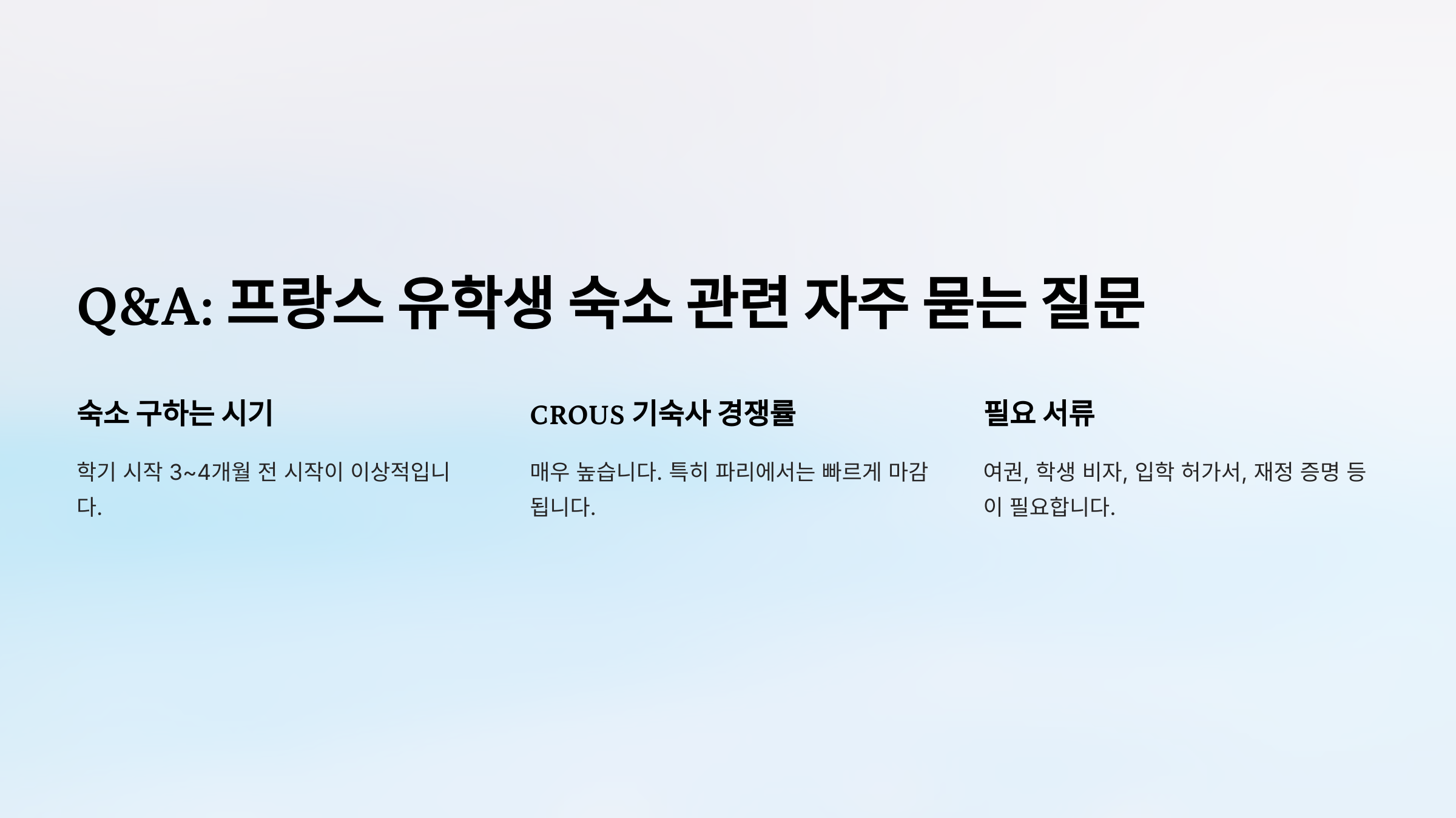❓ Q&A: 프랑스 유학생 숙소 관련 자주 묻는 질문