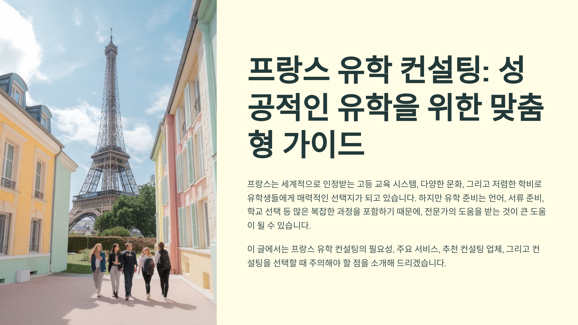 이번 글에서는 프랑스 유학 컨설팅의 필요성, 주요 서비스, 추천 컨설팅 업체, 그리고 컨설팅을 선택할 때 주의해야 할 점을 소개해 드리겠습니다. 🎯