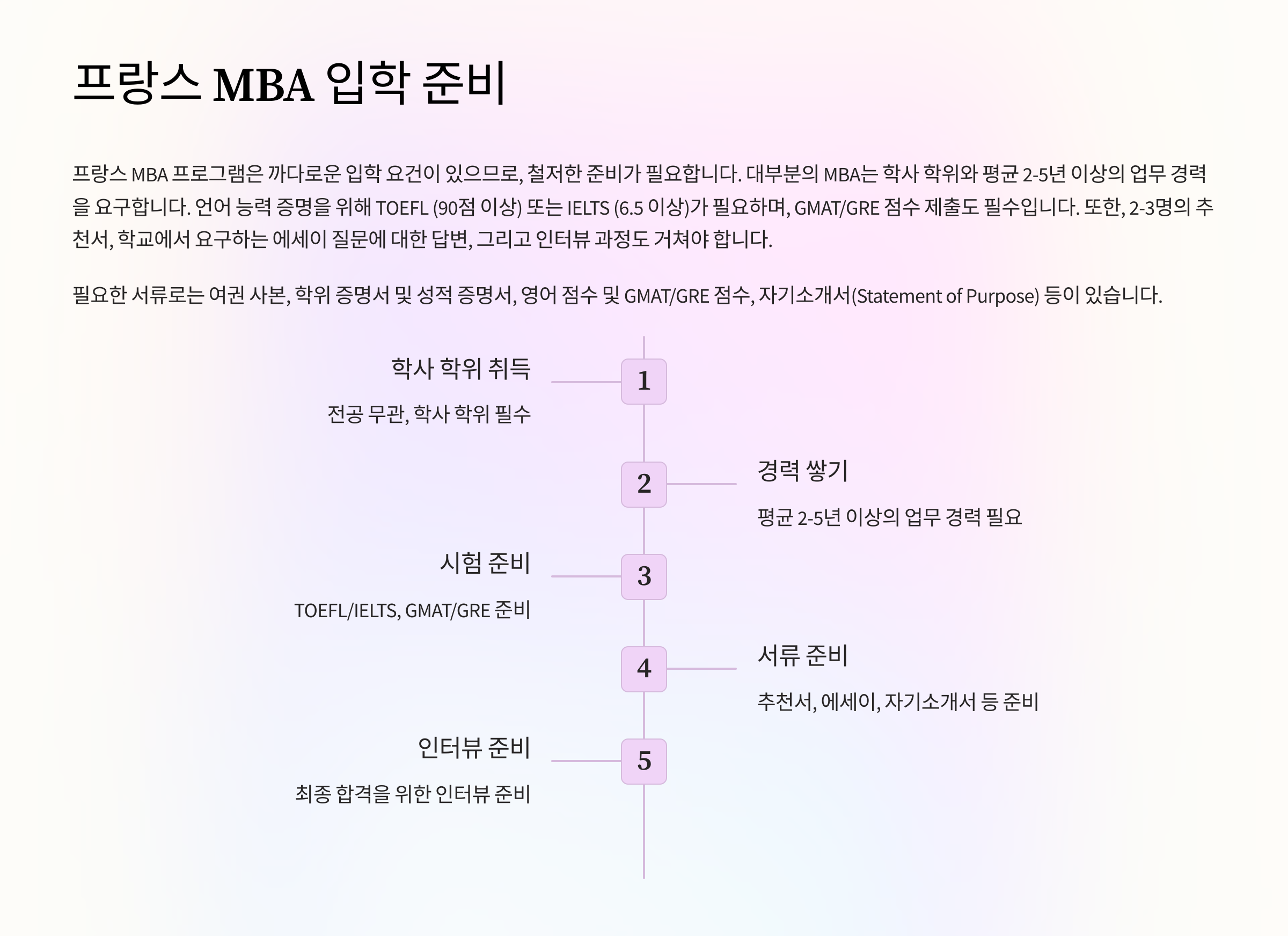 프랑스 MBA 프로그램은 까다로운 입학 요건이 있으므로, 철저한 준비가 필요합니다.